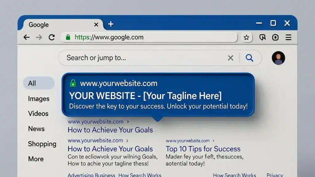 Иллюстрация поисковой выдачи с вашим сайтом на первой позиции.